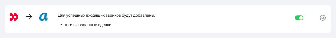 1. В выбранном сценарии интеграции в блоке «Входящие звонки» включите добавление тегов, передвинув переключатель вправо.