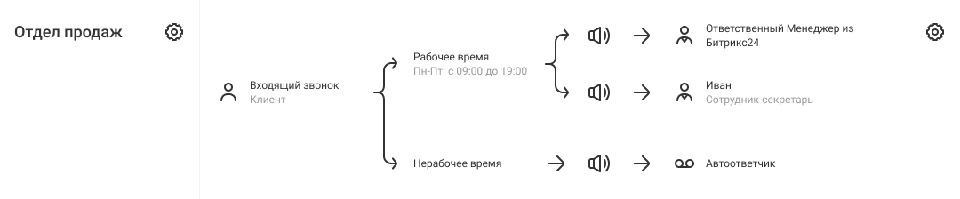 Если некоторые отделы вашей компании не работают с Битрикс24, их легко исключить из интеграции. Это поможет избежать лишних лидов и сохранить фокус только на тех обращениях, которые требуют внимания менеджеров. Например, при звонке в бухгалтерию лид в CRM создан не будет. Подробнее читайте в статье «Исключение отделов из интеграции с Битрикс24».