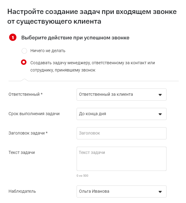 Настройте создание задач для входящих и исходящих звонков (успешных и неуспешных).