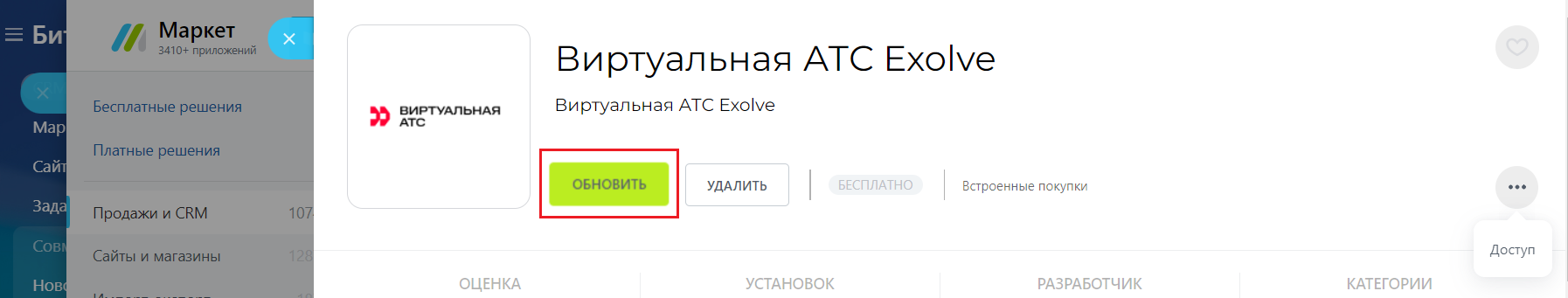 Шаг 1. Обновите приложение в Битрикс24