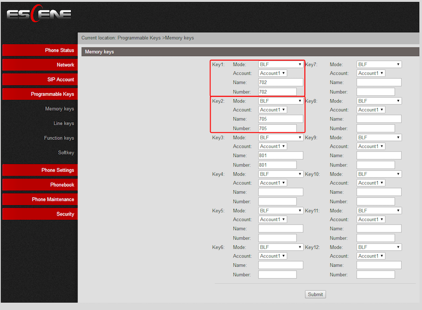 Перейдите в Programmable keys и каждой кнопке назначим добавочный номер сотрудника.