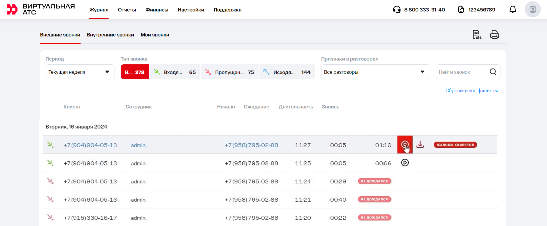 В МТС Exolve вы можете записывать все входящие, исходящие и внутренние звонки. Чтобы прослушать их, перейдите в «Журнал» и нажмите клавишу проигрывания. Вы можете ускорить звонок или быстро переключаться между несколькими звонками.
