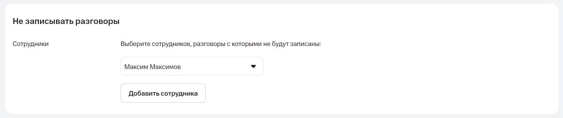 Если в звонке участвовал один из сотрудников из исключения, то не будет доступна вся запись.