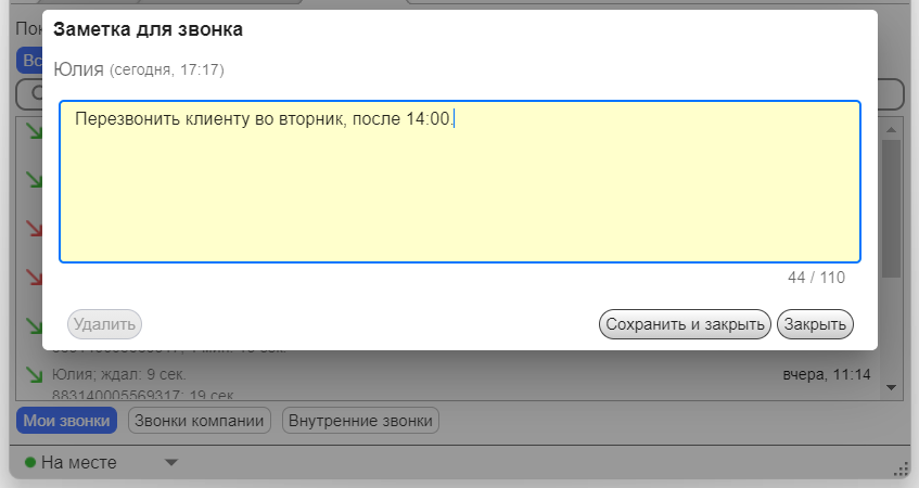 Вы можете оставлять заметки с важными деталями прямо во время разговора. Для этого не обязательно держать под рукой записную книжку и ручку. Просто кликните на кнопку «Заметки» в Коммуникаторе и введите нужный текст.
