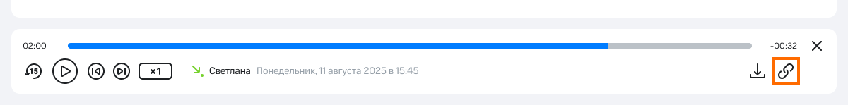 Чтобы поделиться записью звонка в чате, в проигрывателе нажмите на иконку ссылки в правом нижнем углу.