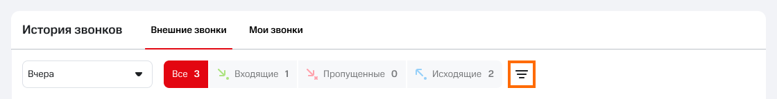 Нажмите на кнопку «Фильтры», чтобы открыть панель фильтров. С ее помощью можно отфильтровать звонки не только по клиентам и сотрудникам, но и: