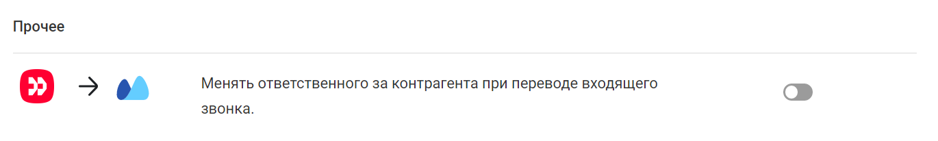 Кроме того, вы можете включить автоматическую смену ответственного за контрагента при переводе входящего звонка в разделе «Прочее».