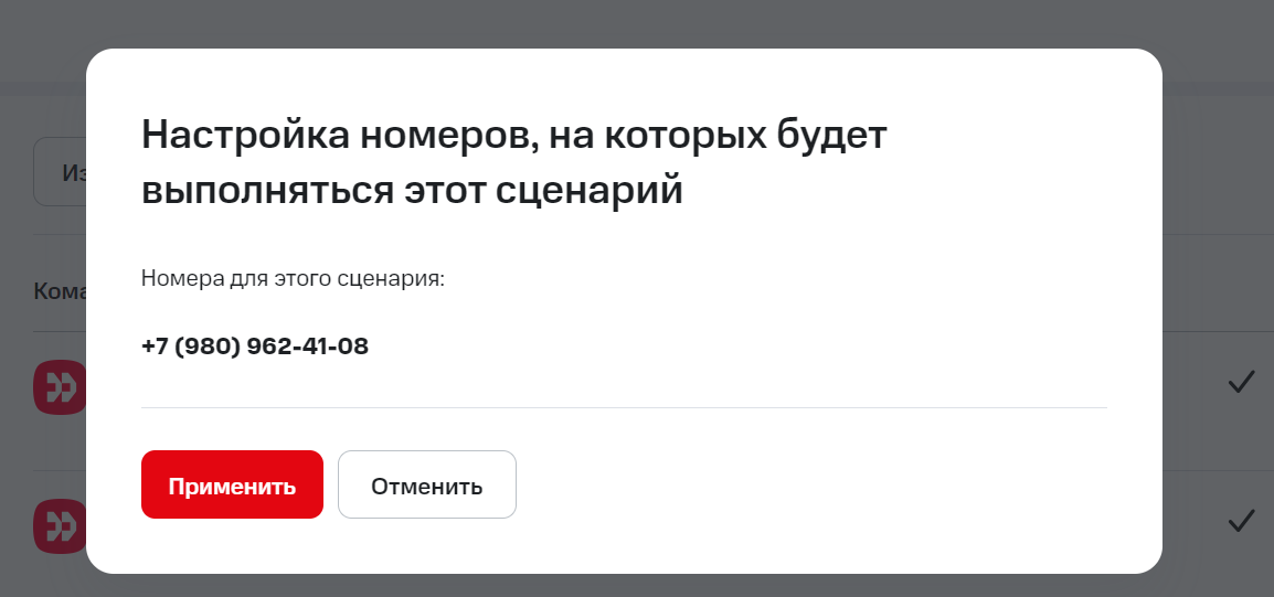 Если ваша компания использует несколько номеров, вы можете указать в настройках, на каких номерах будет работать интеграция с МойСклад. Для этого в разделе «Настроенные сценарии интеграции» нажмите кнопку «Добавить сценарий».
