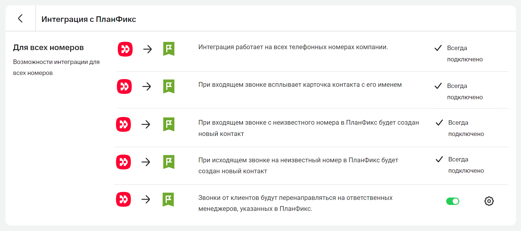 Если вы хотите, чтобы при звонке на номер вашей компании клиент не терял времени на первой линии или IVR и сразу соединялся со своим персональным менеджером, включите данную опцию в настройке интеграции в интерфейсе Виртуальной АТС.