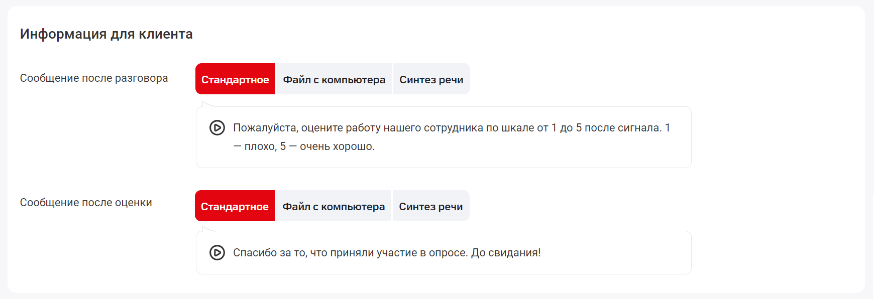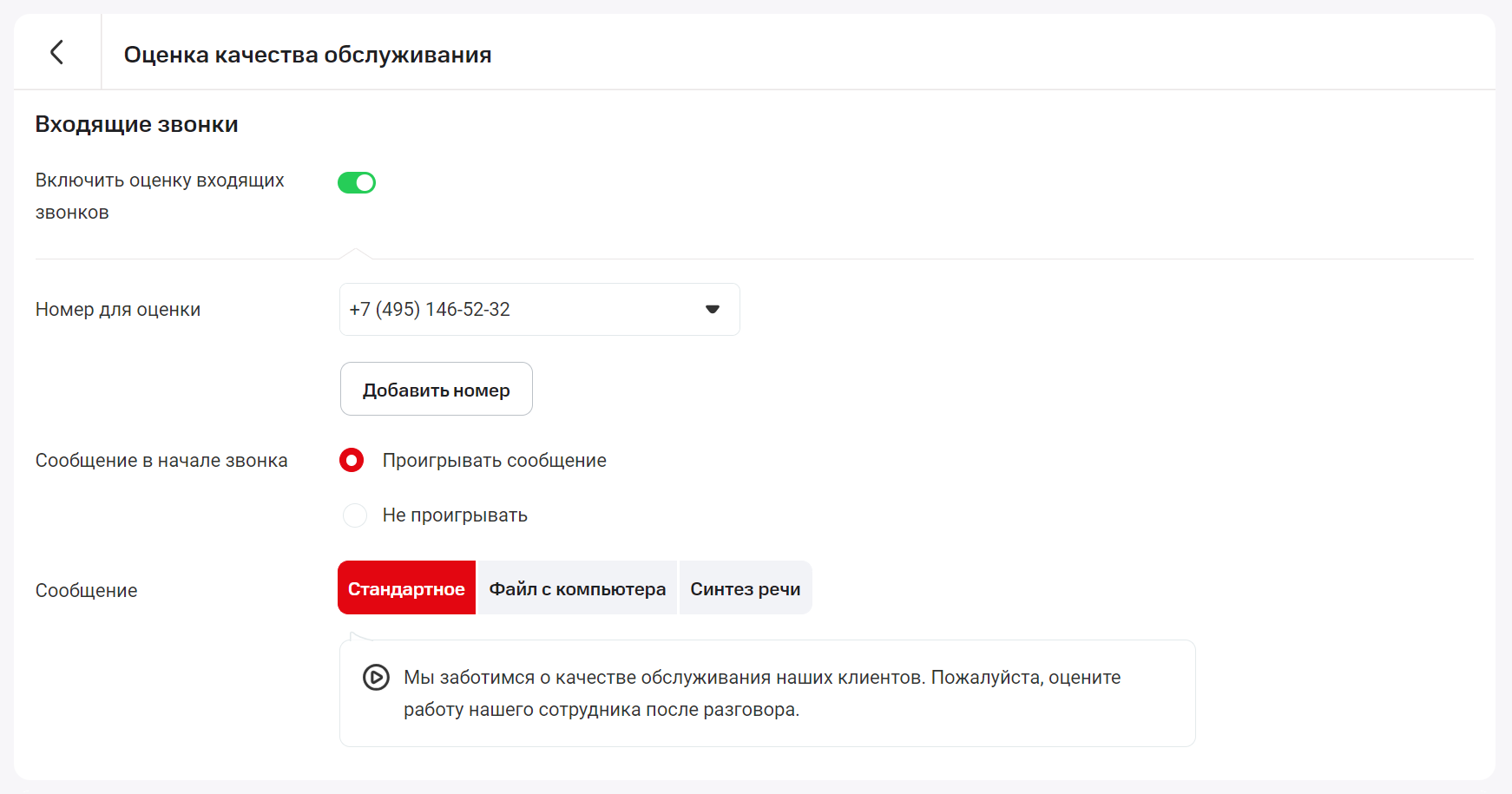 3. Чтобы получить больше оценок, предупредите клиента о том, что в конце разговора попросите его оценить качество обслуживания ー включите сообщение в начале звонка.