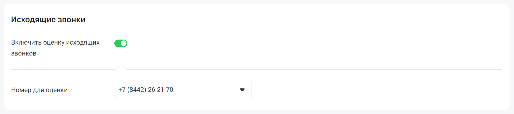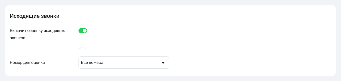 4. Аналогичным образом активируйте переключатель «Оценка исходящих звонков». Выберите внутренние номера сотрудников или группы сотрудников, с которых совершаемые вызовы будут завершаться запросом оценки.