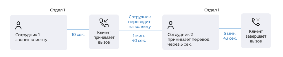 2. Сотрудник 1 перевел вызов на сотрудника 2 внутри отдела.