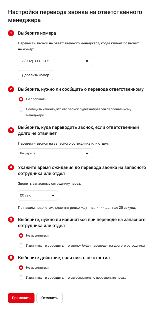 Если ваша компания использует несколько номеров, вы можете настроить сценарии работы в RetailCRM для всех номеров сразу или для каждого в отдельности. Как настроить подобные сценарии интеграции читайте в статье.