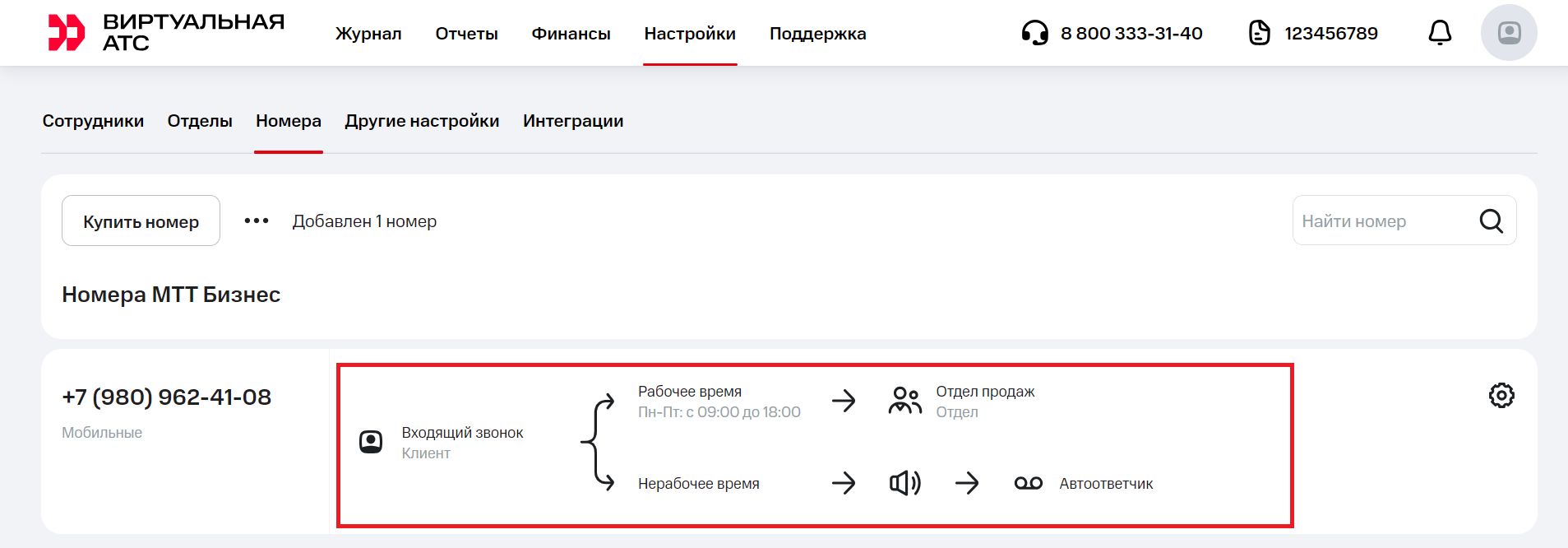 Настройка переадресации завершена, что отразится в схеме приема звонков на номере.