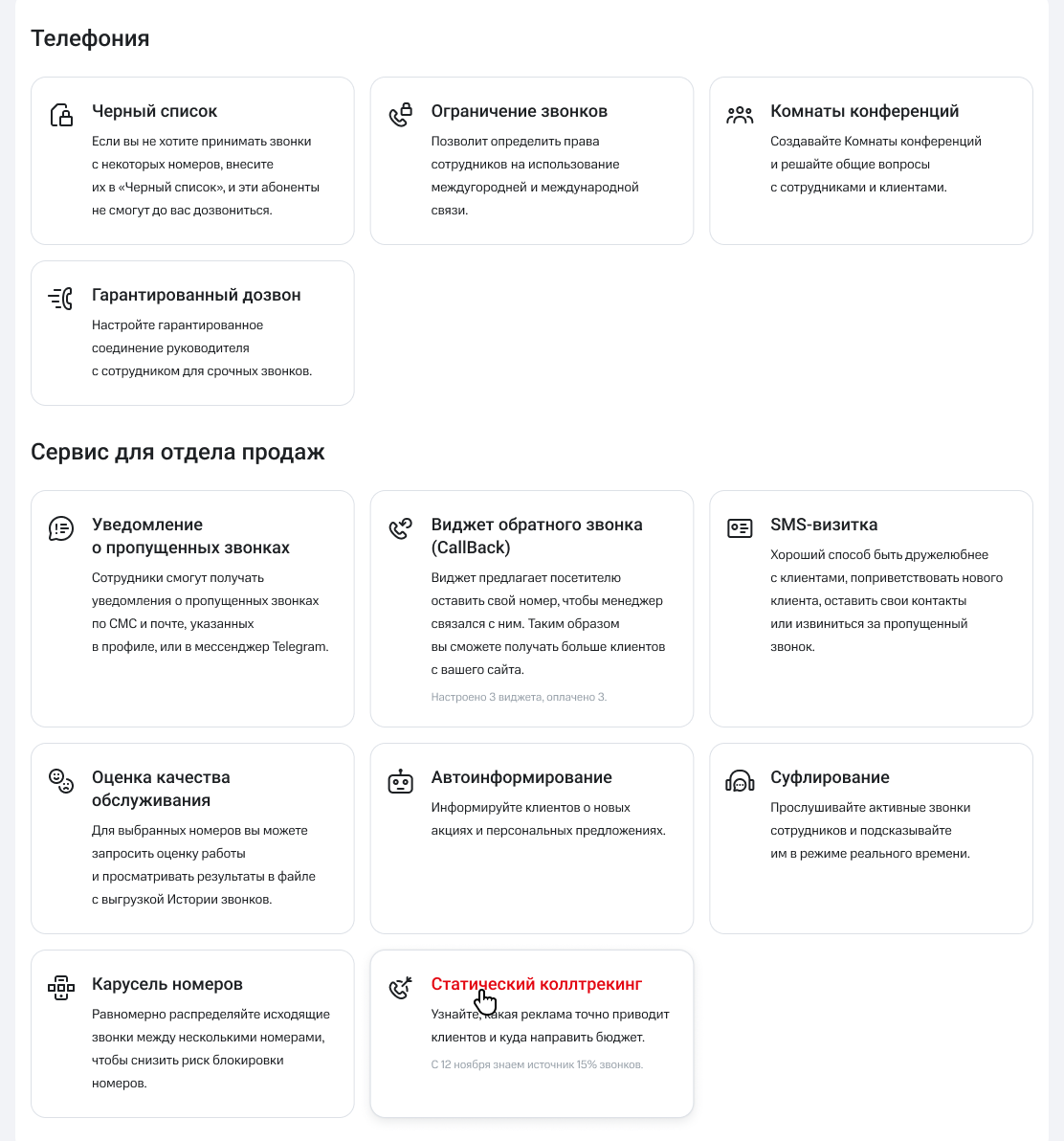 1. Перейдите в раздел «Настройки» — «Еще» — «Статический коллтрекинг».