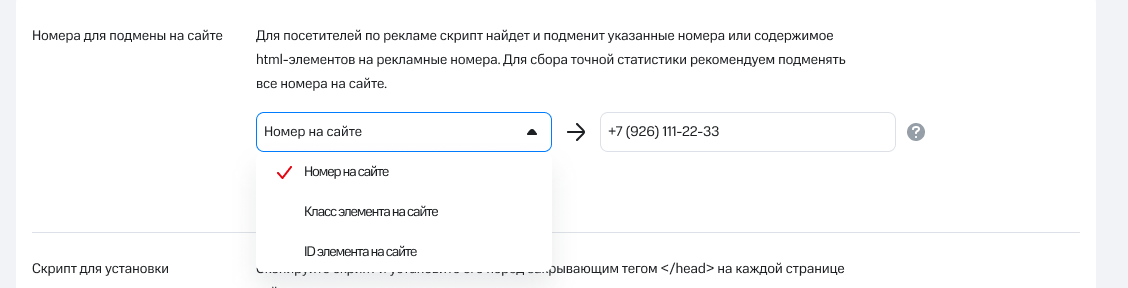 Чтобы ваш сайт автоматически показывал нужный рекламный номер посетителю в зависимости от того, откуда он пришел, настройте подмену номеров.