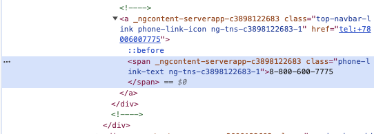 Чтобы узнать класс или ID элемента сайта с номером, откройте ваш сайт в браузере Google Chrome, наведите курсор на номер телефона на сайте, нажмите правую клавишу мыши и выберите «Посмотреть код». В открывшемся справа окне будет выделен код сайта, содержащий номер телефона.
