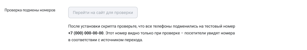 Также перед запуском кампании вы можете проверить подмену номеров на сайте вручную.Для этого перейдите в настройки нужной рекламной кампании и нажмите на кнопку «Перейти на сайт для проверки», расположенную под блоком со скриптом. Вы перейдете на сайт, указанный в рекламной кампании.