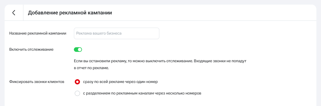 3. Введите название рекламной кампании и выберите, как будут отслеживаться звонки клиентов: